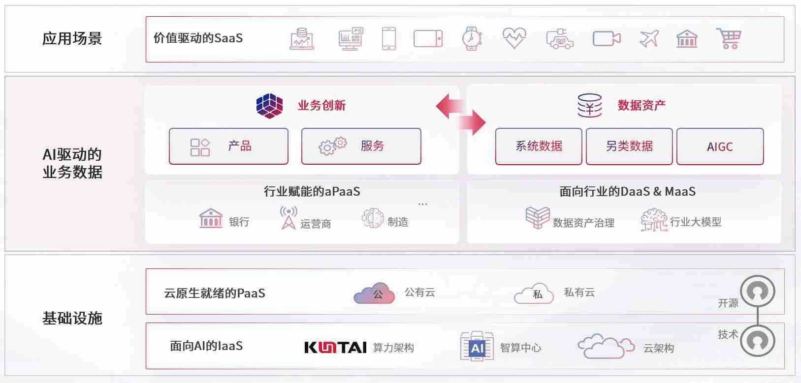 数字时代,,,,围绕企业数字化转型的关键要素,,,欧陆娱乐数码开创性的提出数云融合战略和技术体系框架,,着力在云原生、、、数字原生、、、AI原生和信创产业上架构产品和服务能力,,为处在不同数字化转型阶段的快消零售、、、汽车、、金融、、医疗、、政企、、、、教育、、、运营商等行业客户提供泛在的敏捷IT能力和融合的数据驱动能力,,,构建跨界融合创新的数字业务场景和新业务模式,,,助力企业级客户建立面向未来的核心能力和竞争优势,,全面推动社会的数字化、、、、智能化转型升级。。